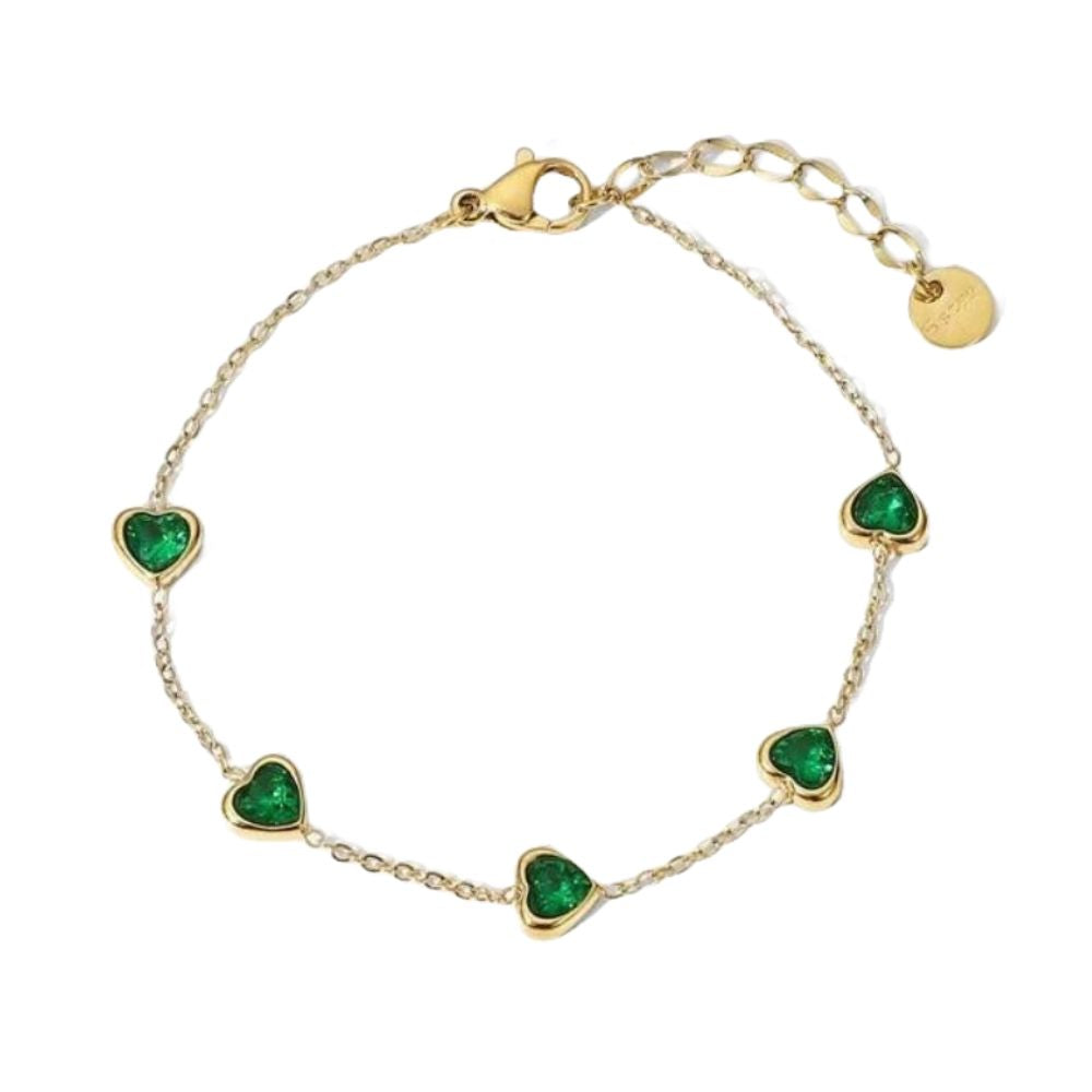Description: The Green Heart Fine Chain Bracelet is a stylish and elegant piece that effortlessly enhances any outfit. Crafted from high-quality 18K PVD gold stainless steel, this bracelet combines durability with a luxurious appearance. The stainless steel is meticulously coated with 18K PVD gold, ensuring a lasting shine and resistance to tarnishing.